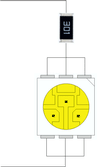 ![]() | En una tira led estandar podemos apreciar los tres chip led junto a sus resistencias correspondientes de limitación y las pequeñas pistas que los interconectan. |